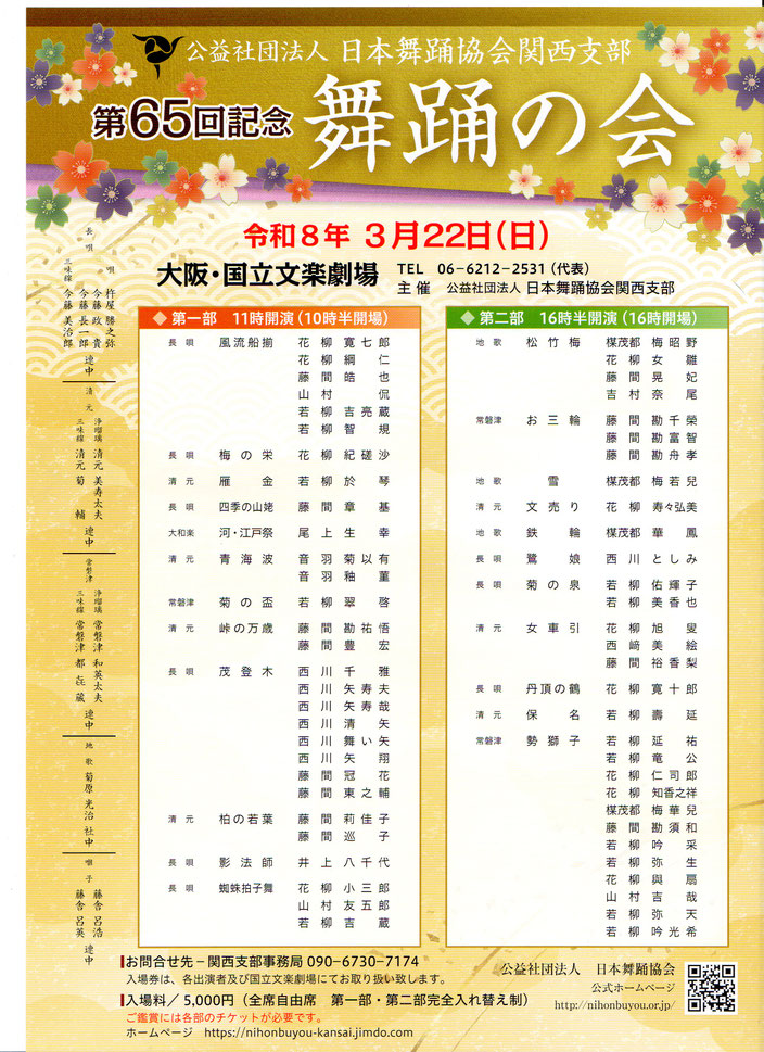 【開催日時】令和7年3月23日(日)第一部:11時開演 第二部:16時開演【会場】 国立文楽劇場【出演】 山村若、侃【料金】 5,000円(全席自由席、一部二部完全入れ替え制) 【主催】日本舞踊協会関西支部【お問い